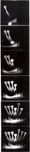 The experimental techniques of their films were concerned with moving lights and shadows on objects. They evolved out of the Themersons' improvisations with the photogram, 1928-35. Most of the images were made on an improvised 'trick-table' devised by Stefan Themerson. He placed various objects on a piece of translucent paper over a sheet of glass. The lights were above, and he photographed the images from below (frame by frame).